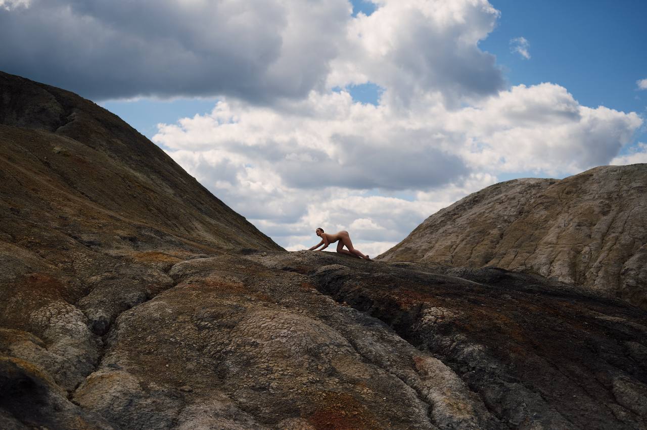 Fiery sunset with crescent moon